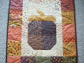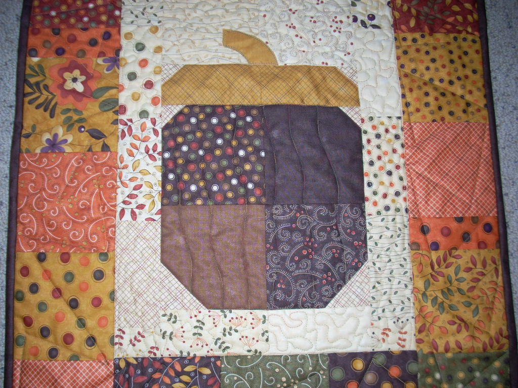 I picked up this cute wallhanging kit by Sandy Gervais using her new line called Awesome. I needed some help getting excited about sewing in fall colors. I thought this would make a fun gift for hubby’s sister whose birthday is next week! It went together well and I enjoyed quilting it. So how about you – are you ready for fall? Put up any fall decorations?