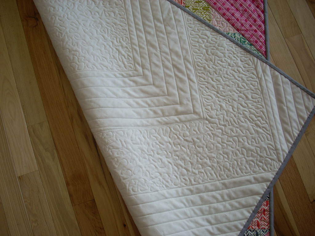 From the back, you can see the quilting better. I decided to use a Kona grey for binding.