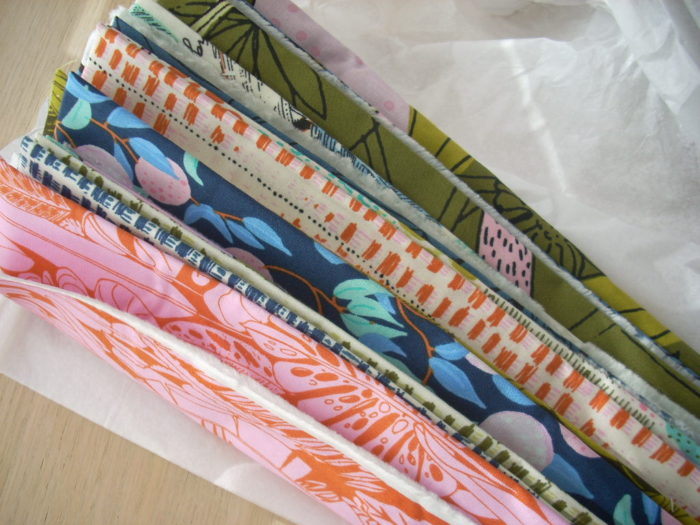 Love that Sedona-ish fabric from Bird’s Eye View! I see some neat colorful triangles fabric right in the middle of those scraps.