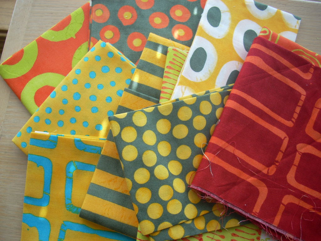 The Birthday Giveaway #3…these fabrics…a few fat quarters, a few fat eighths and a couple of scraps.  Now the question – what line or lines is this and who is the designer??  Good Luck!
