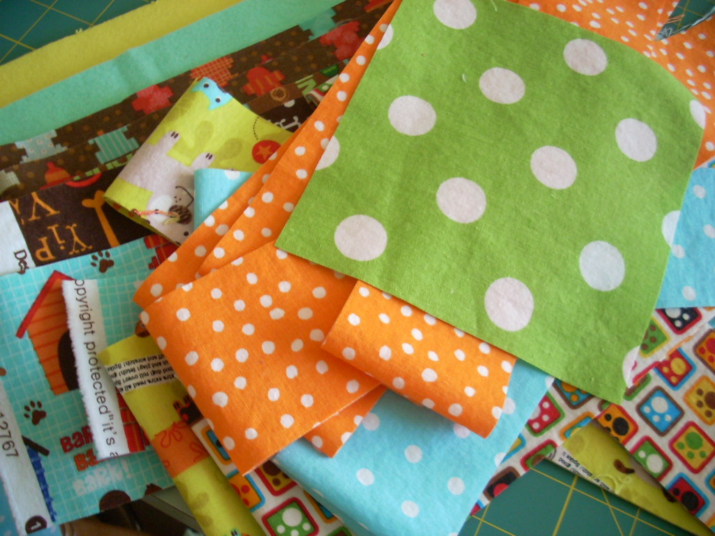 I decided to cut some fabric into a few different size strips and then some fabric into squares.
