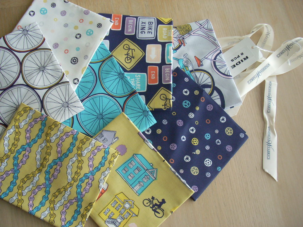 Cute new fabric lines!!!! I can’t wait to see what you make with them. Do you have a basket on your bike? You could make a little patchwork basket liner with “Bike” =D