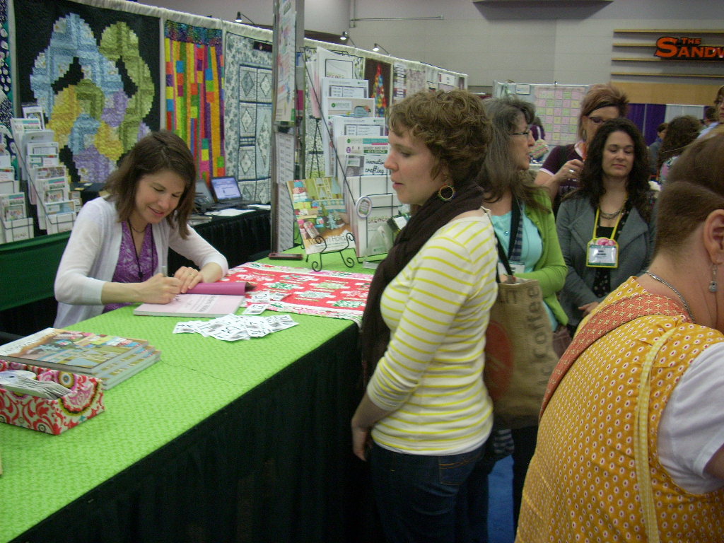 Have you seen Tula’s new book City Sampler??  Since they were such a hot ticket, she was selling and autographing them in her booth.  Here Donna bought one, so the deal was Tula signed her and you signed Tula’s.