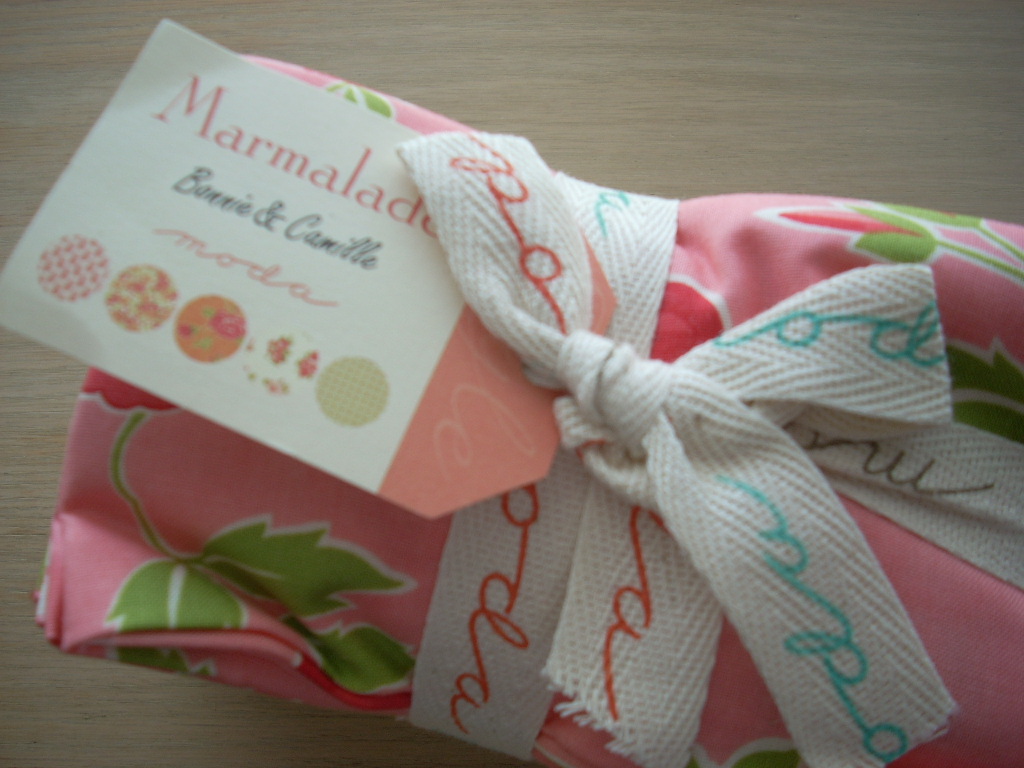 So I’ll end this post with a bit of a story….do you know this upcoming line??  Well, before market, I had seen just a bit about it.  At Sample Spree I was with several gals as we scanned the Moda table first.  I had this last bundle of ________ and one of the other gals desired it too, so we decided to split it.  Thanks Tammie!!  My portion arrived last week and ohhhhhhh I love this line!!!!  Any guesses??