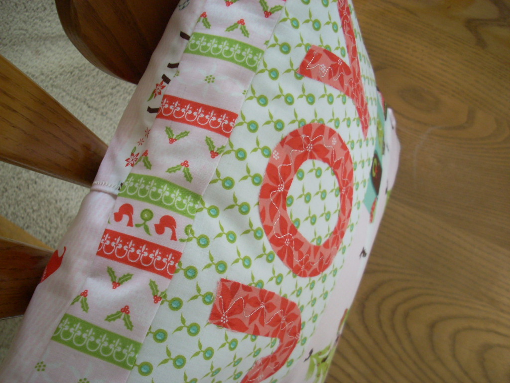 I love your Joy pillow! I spy a little Moda candy and some cute Christmas prints.