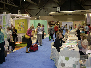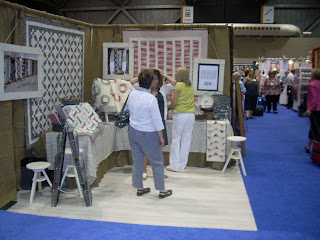 Here is Tula Pink showing us her booth – amazing! The quilting on her quilts is fabulous!!