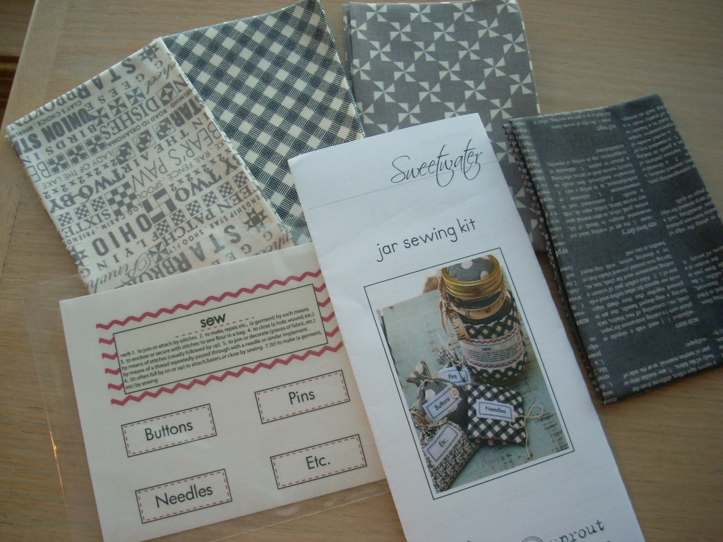 This is the first week of school and we are after school kid-sitting two grandnieces 2 days a week. The oldest is learning to sew, so we will sew. I’m starting a new quilt project and making some test blocks to find one that works. I love the jar sewing kit idea from sweetwater.