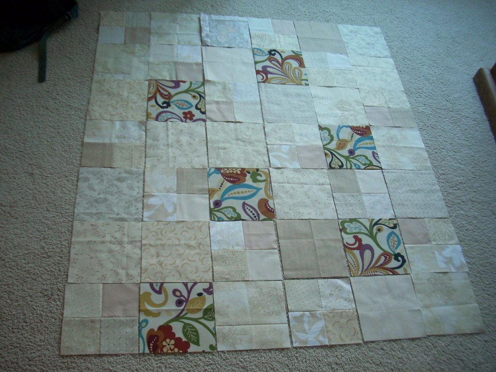 I designed a creme on creme quilt with a few of these home decorator fabric squares for a bit of color punch!