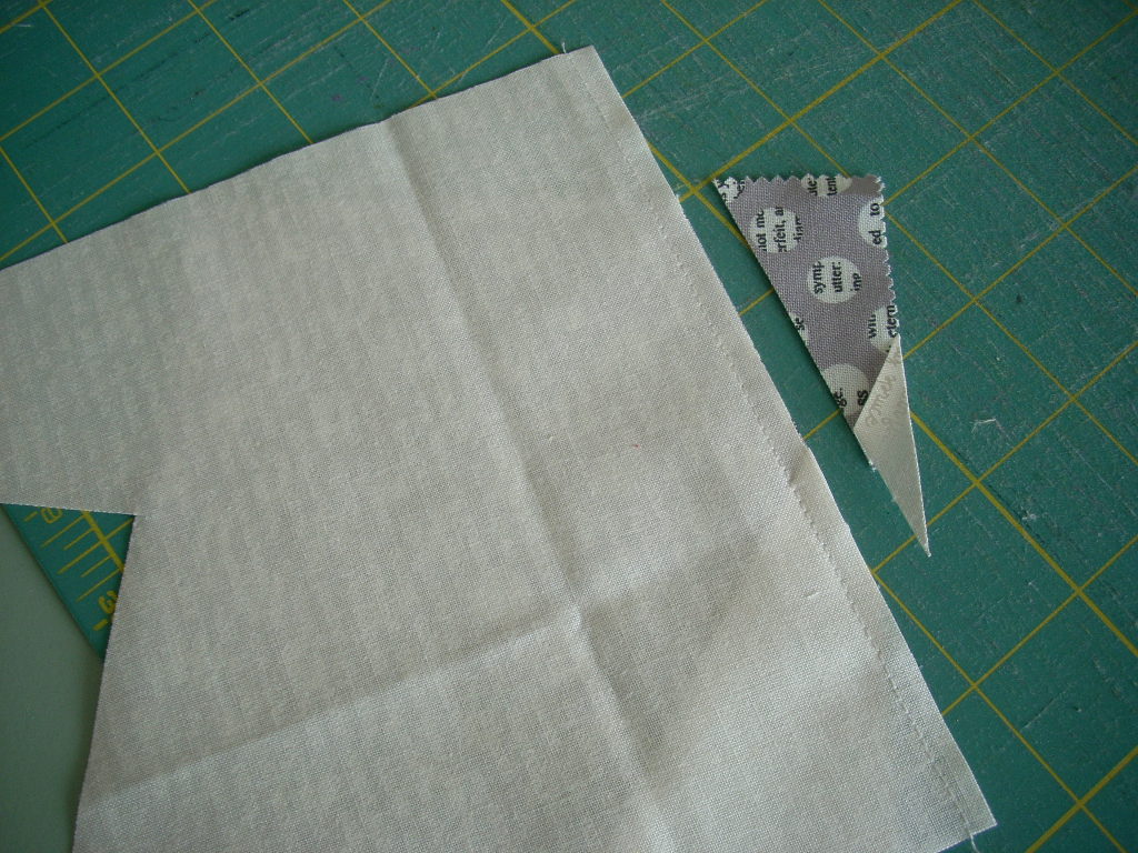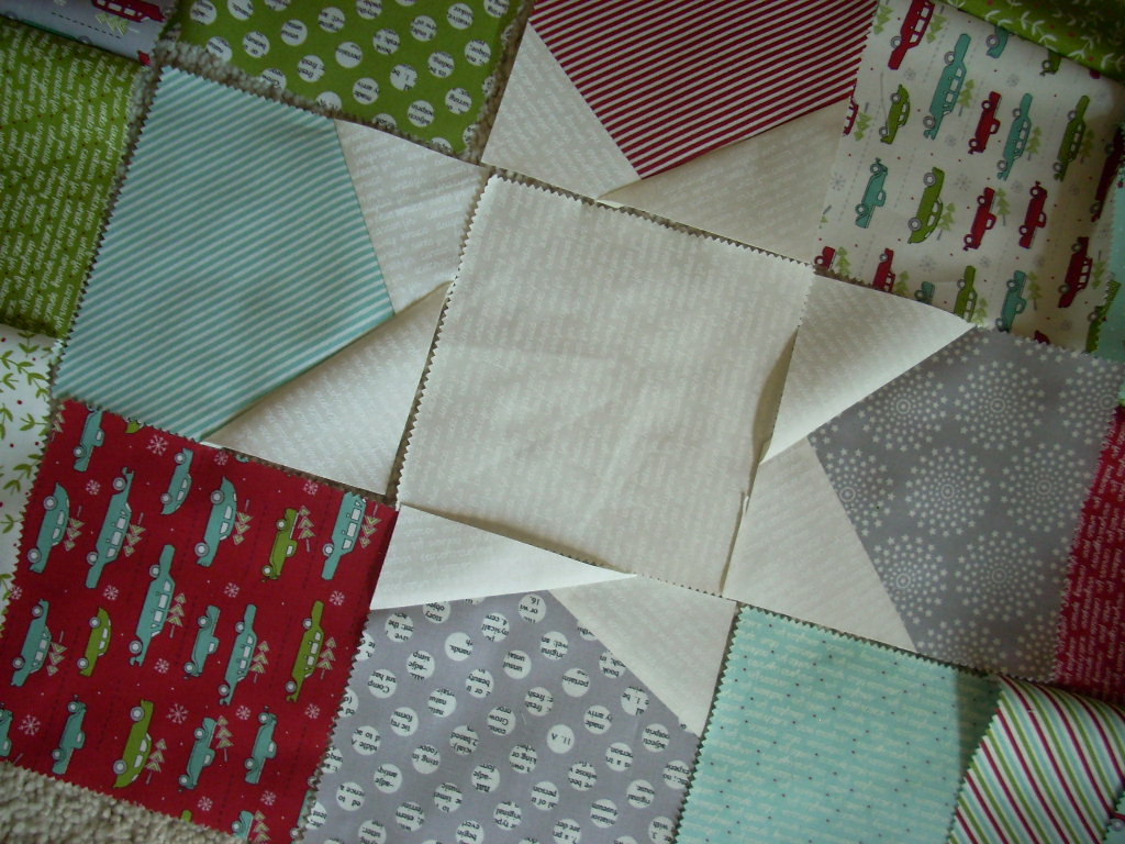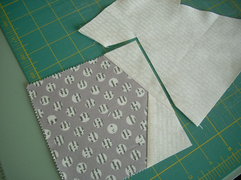 on an angle over the print square…right sides together and sew 1/4 inch from the edge of the creme square