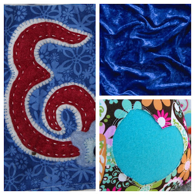 Bumpy (buttons, French knots, corduroy, beads, 3D elements such as flowers). Remember to be overly cautious about using any 3D elements for children. I made the robot (middle right picture) for my son when he was 3.5 yrs old and he was not a “chewer” at that time, but since then we have had two more children and they stick EVERYTHING in their mouths. So when in doubt, stay away from beads and buttons – better safe than sorry.